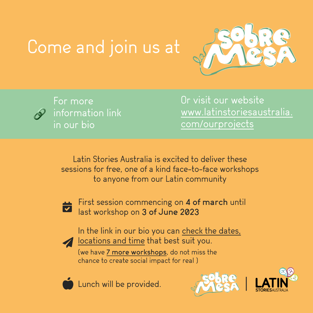 During my time living in Melbourne and through my collaboration with Latin Stories, I contributed to supporting and innovating several of the organisation’s key programs, including: