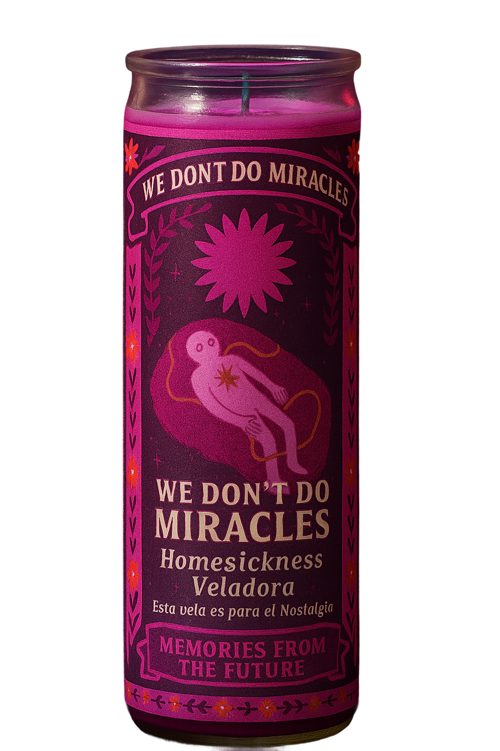 In Milagros No Hacemos, a veladora is not just a simple candle, it is a symbolic artefact of cultural memory, resistance, and an emotional experience portal. Inspired by Latin American ritual candles sold in local markets, each veladora in this project becomes a personal and collective emotional tool.